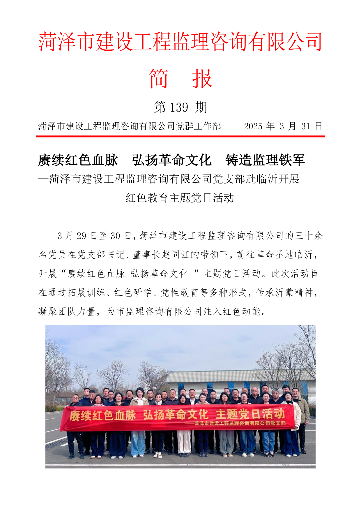 菏澤市建設工程監(jiān)理咨詢有限公司簡報(139) 2025-4-2 本文被閱讀 147 次